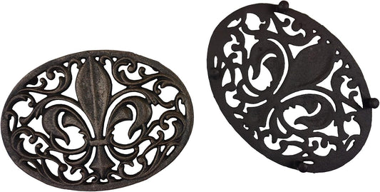 Cast Iron Oval Fleur de lis Trivet, Set of 2, Antique Brown