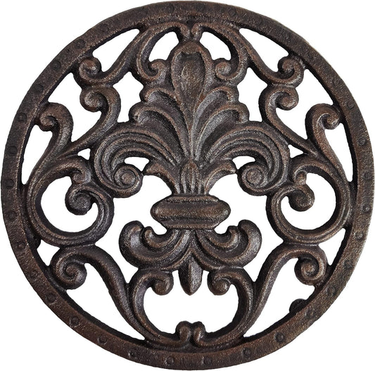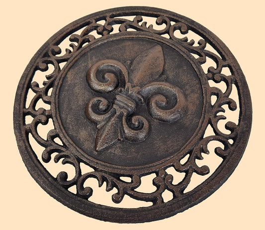 Cast Iron Circle Fleur de lis Trivet or Wall Decoration