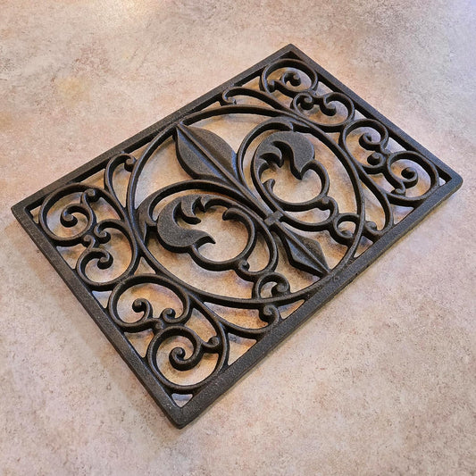Cast Iron 13" x 9" Rectangle Fleur de lis Trivet Set of 2 pcs, for Hot Dishes or Pots