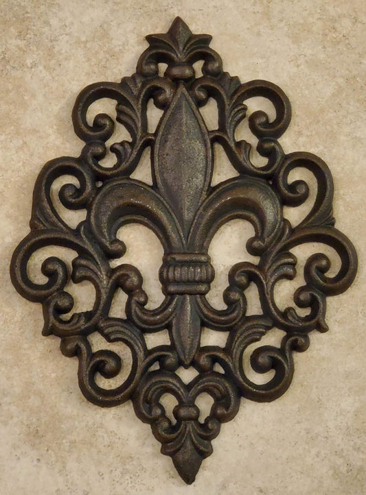 Cast Iron 14" Fleur De Lis Decoration Plaque