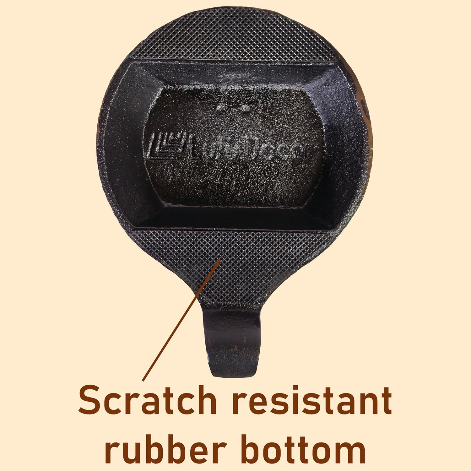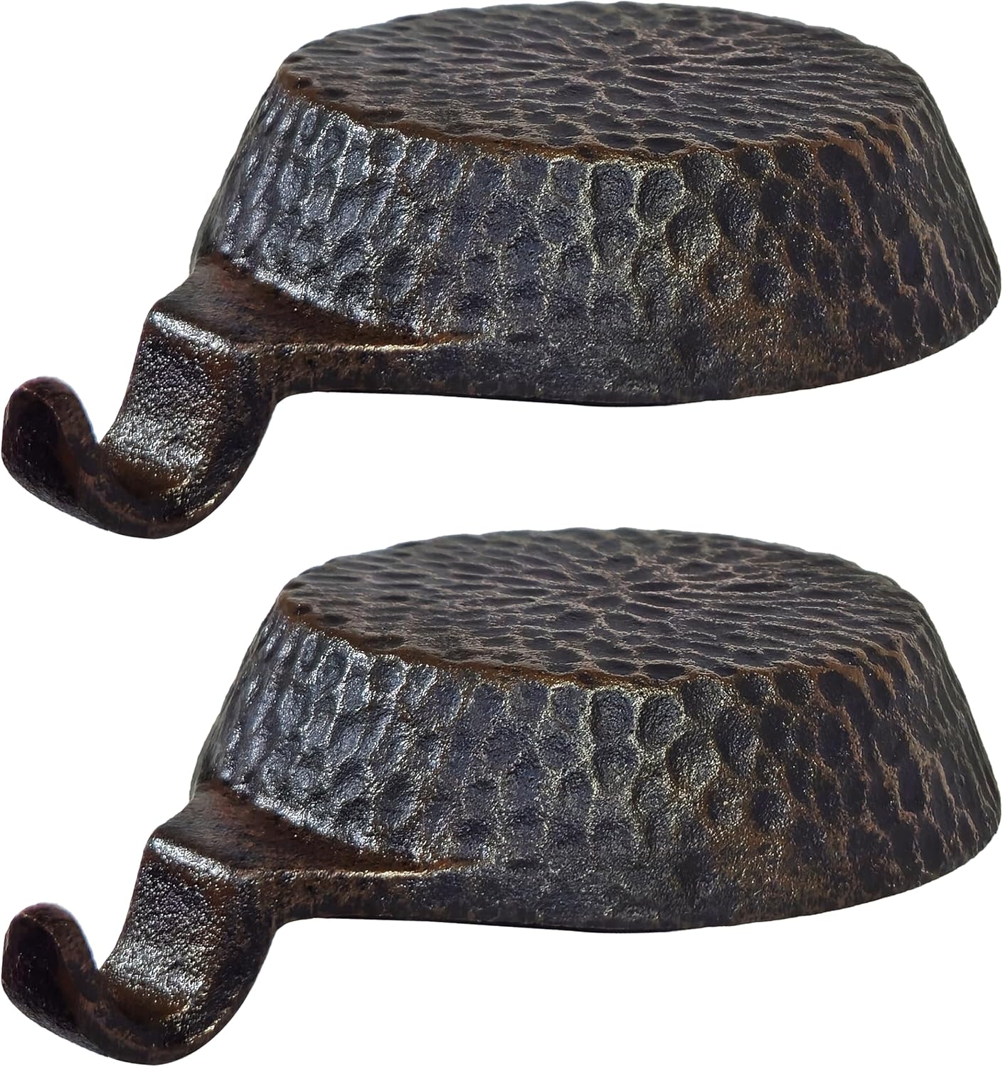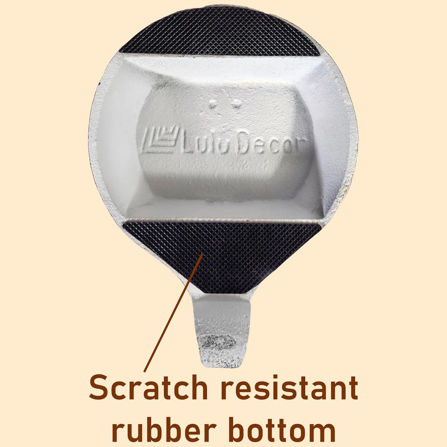 - Sturdy & heavy-duty 100% Cast Iron stocking hooks with thick rubber padded base for perfect grip & no scratches on your furniture. Exclusively designed & made by Lulu Decor. Round low profile flat 4.50 inches heavy base. Black color with hammered finish. Set of 3 bases